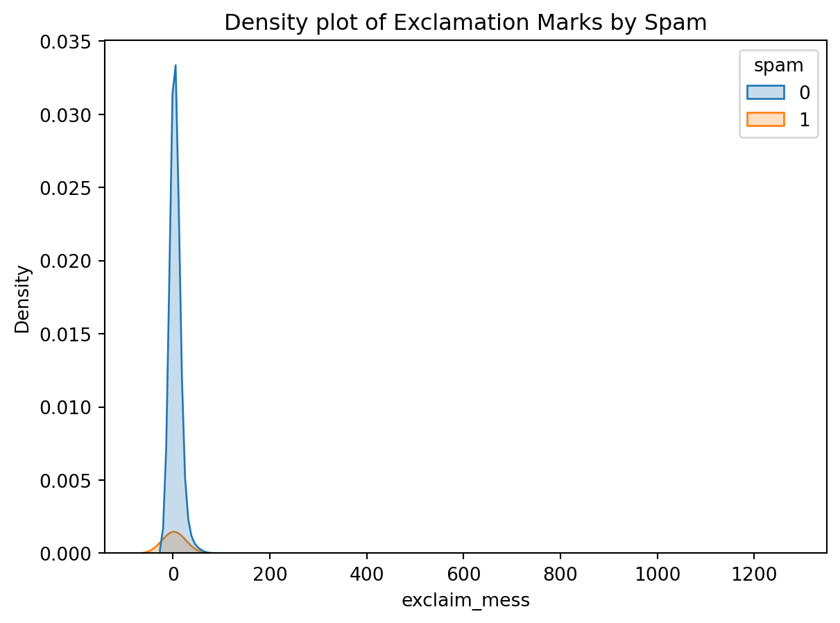 spam: 1 if the email is spam, 0 otherwiseexclaim_mess: The number of exclamation points in the email message