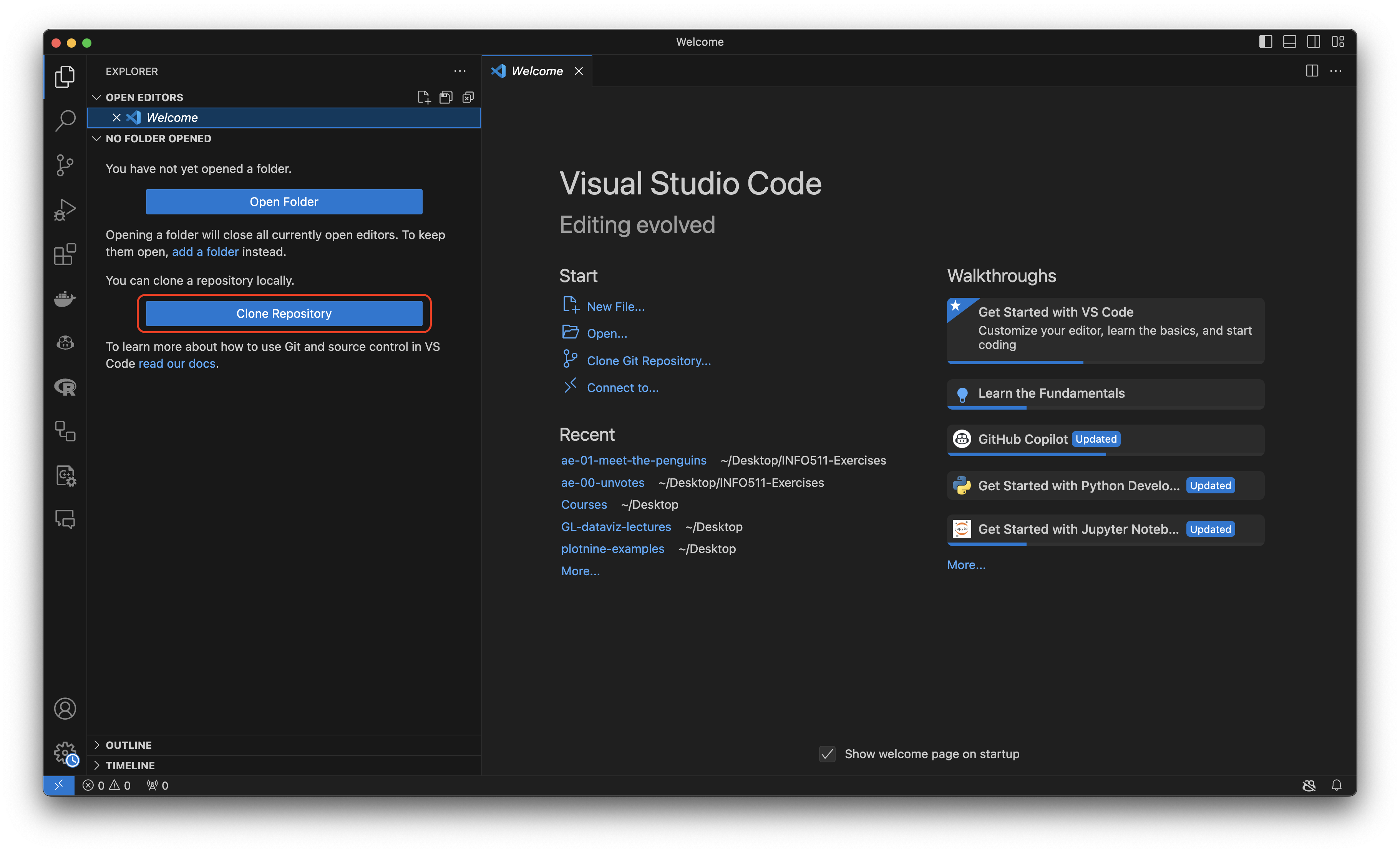 - Once VS Code is open, click on the Explorer: