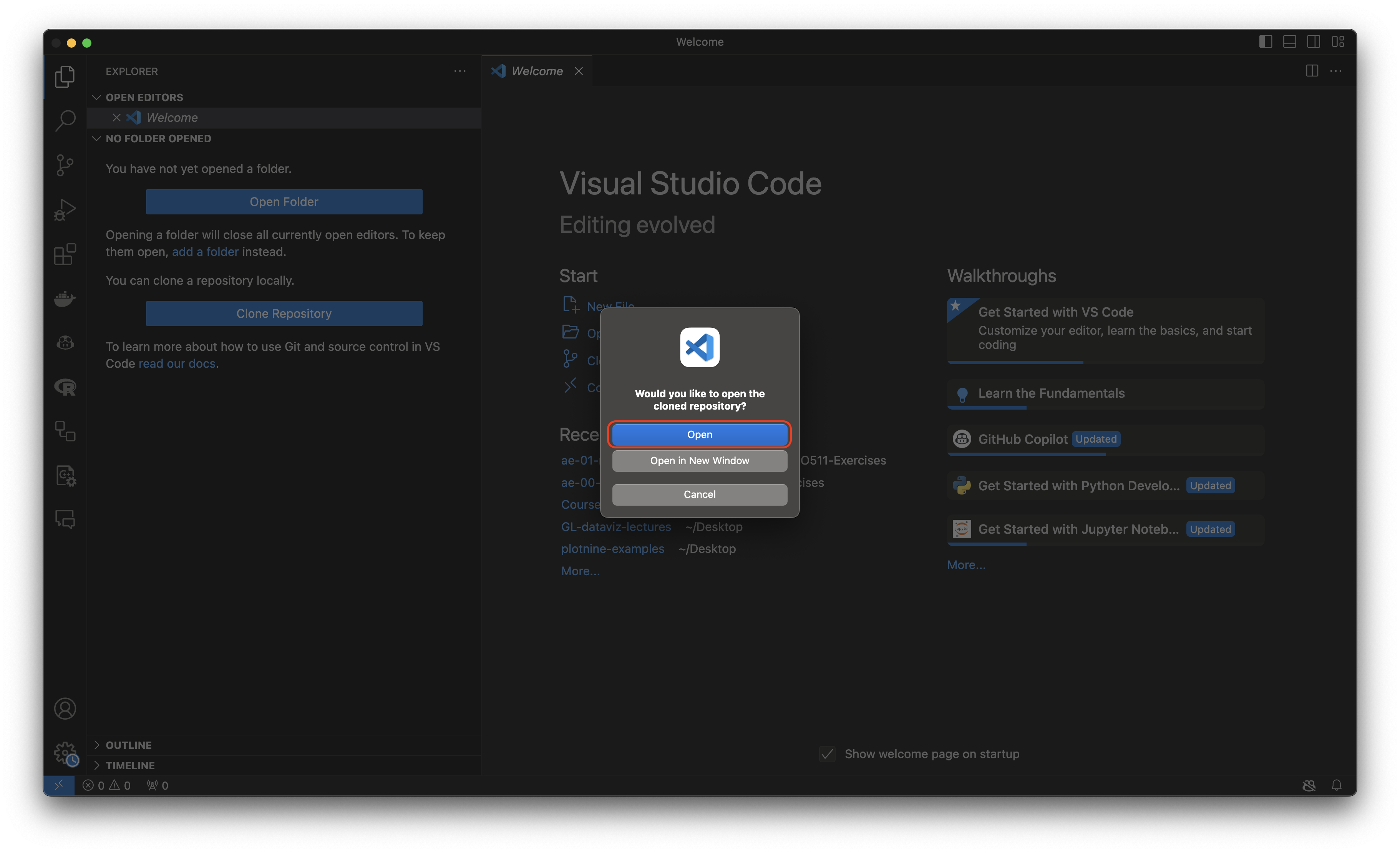 - Click “Clone Repository”: