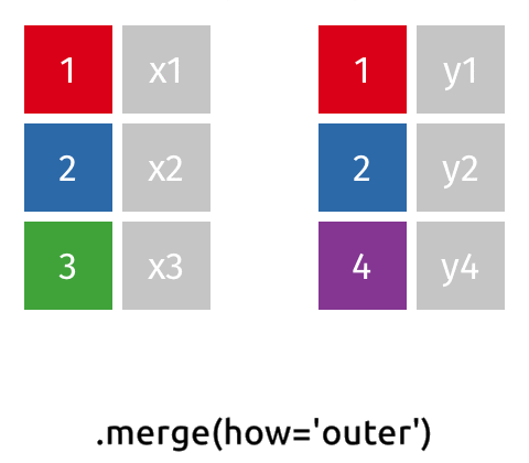 outer_merged = pd.merge(x, y, on='id', how='outer')print(outer_merged)
