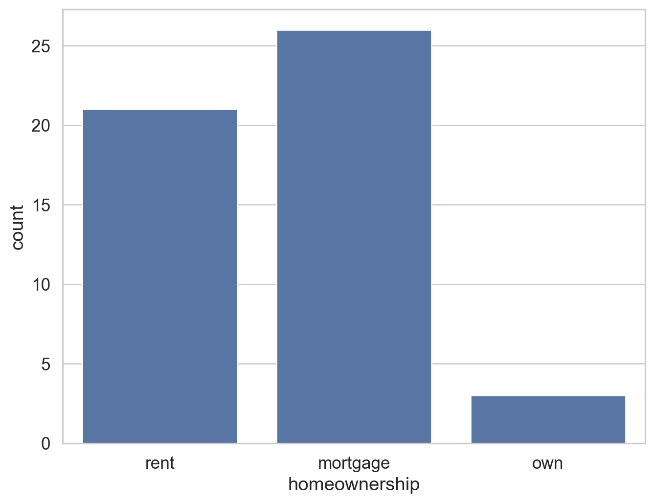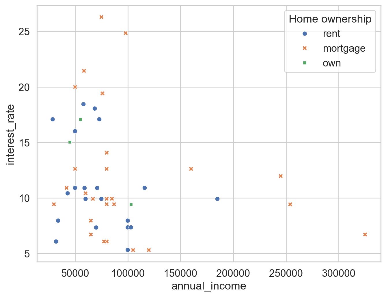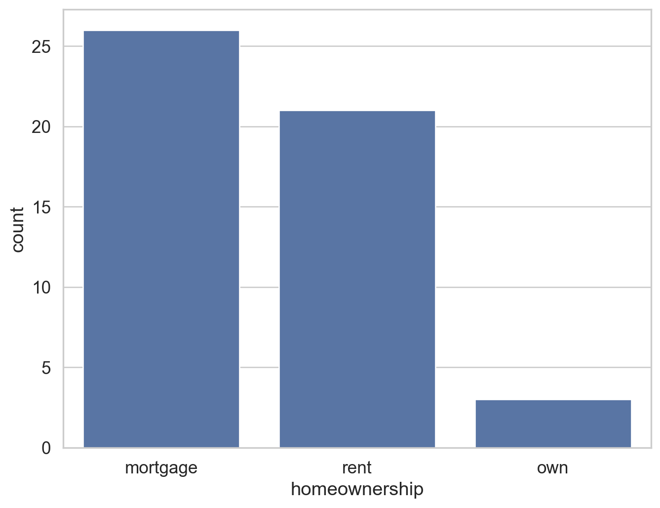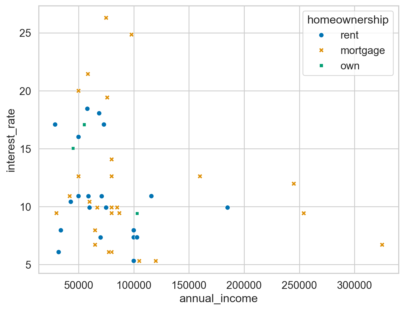 loan50 example DataFrame| state | emp_length | term | homeownership | annual_income | verified_income | debt_to_income | total_credit_limit | total_credit_utilized | num_cc_carrying_balance | loan_purpose | loan_amount | grade | interest_rate | public_record_bankrupt | loan_status | has_second_income | total_income | |