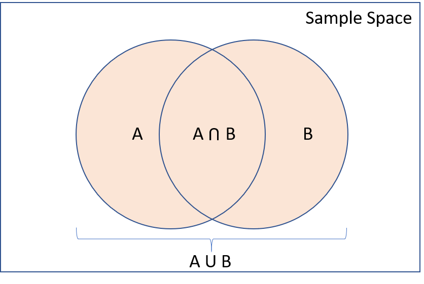 Remember that events are (sub)sets of the outcome space. For two sets (in this case events) \(A\) and \(B\), the most common relationships are: